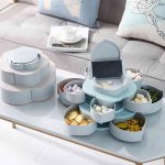 Viacero priehradiek umožňuje uložiť širokú škálu predmetov, od cukríkov, sušienok, sušeného ovocia, olív, kúskov syra a iných pochutín.