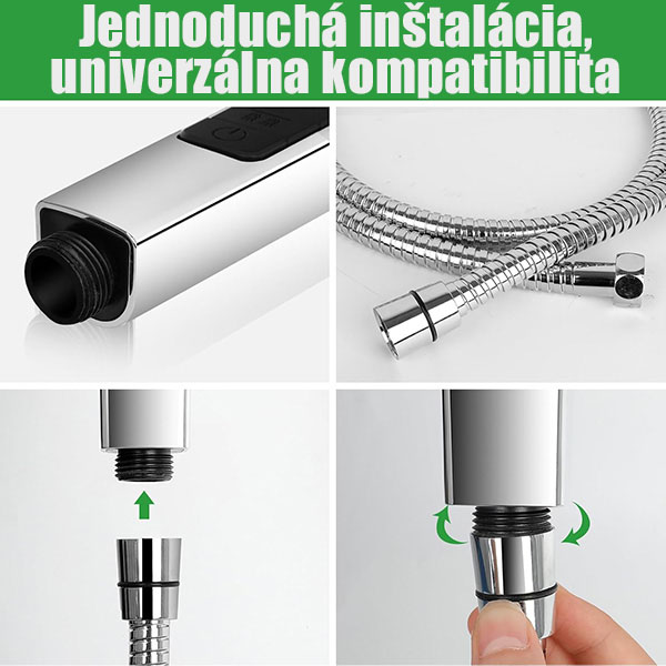 Kompatibilita: Univerzálna kompatibilita so všetkými štandardnými sprchovými hadicami